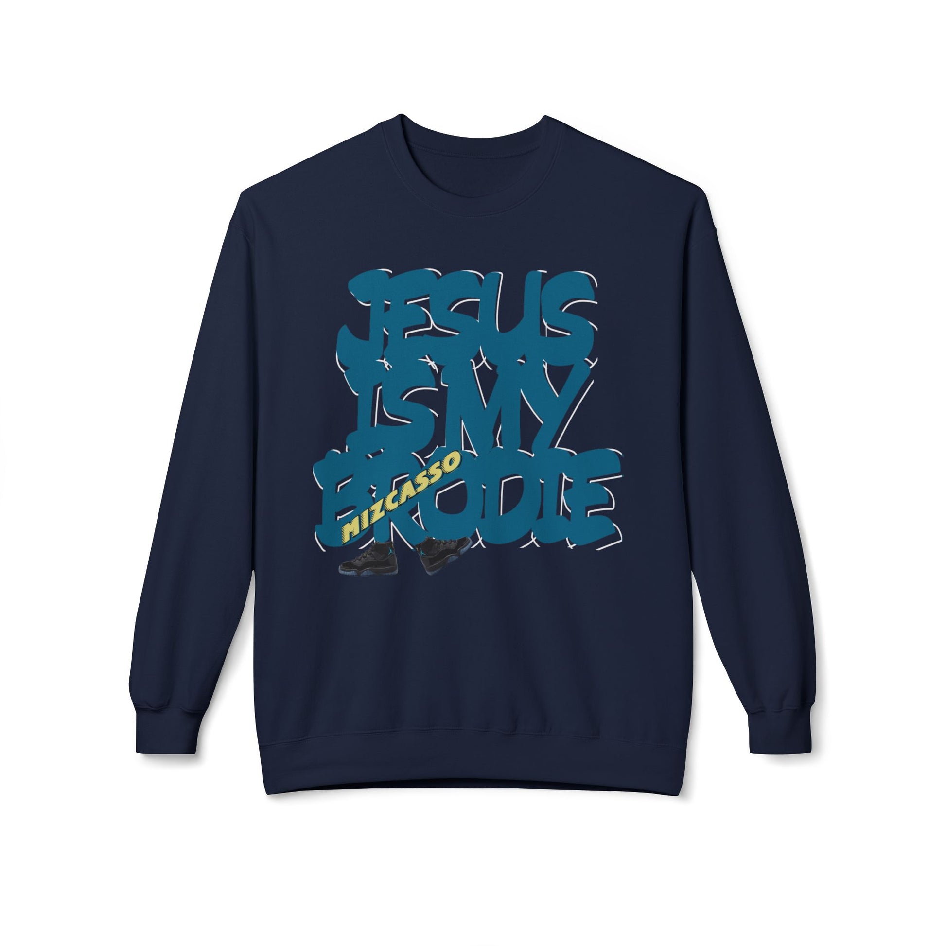 Crewneck Sweatshirt — 'Jesus Is My Brodie' Bold Graffiti Christian Pullover